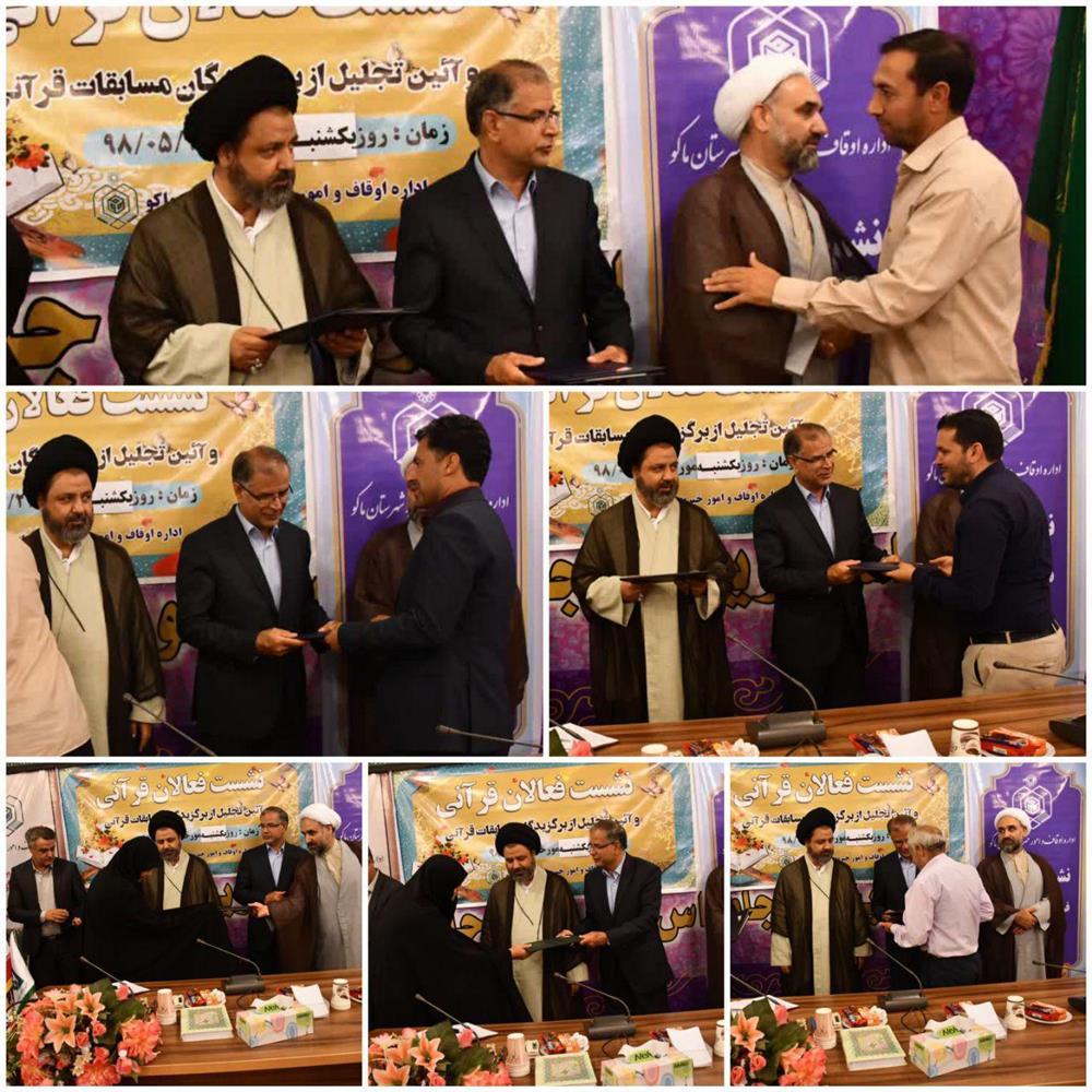 🔻اسماعیل اسکندرزاده رئیس اداره اوقاف و امور خیریه ماکو هم در این مراسم با اشاره به اینکه در 42 دوره مسابقات قرآن مرحله شهرستانی ، 70 نفراز قاریان در پنج رشته حفظ ، قرائت ، ترتیل ، اذان و دعا خوانی شرکت کرده بودند اظهار داشت : از میان شرکت کنندگان ۲۰ نفر به مسابقات استانی راه پیدا کردند .