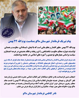 پیام تبریک نادر کاظمی فرماندار شهرستان ماکو به مناسبت یوم الله 22 بهمن