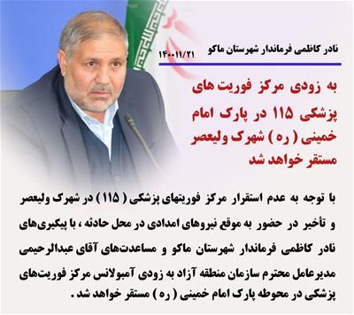 به زودی مرکز فوریتهای پزشکی 115 در پارک امام خمینی(ره) شهرک ولیعصر مستقر خواهد شد