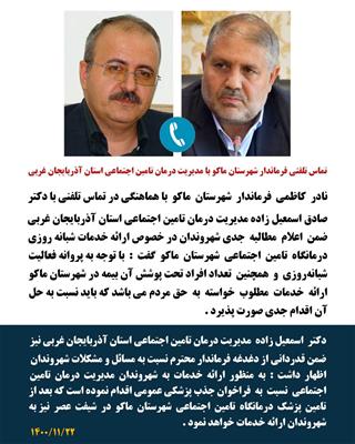 ارائه خدمات شبانه روزی درمانگاه تامین اجتماعی مطالبه جدی و حق مردم ماکو می باشد