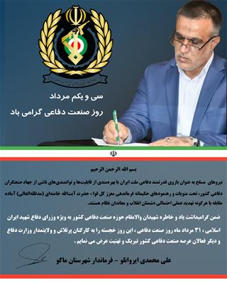 پیام محمددی ایروانلو فرماندار شهرستان ماکو بمناسبت سی و یکم مرداد روز صنعت دفاعی