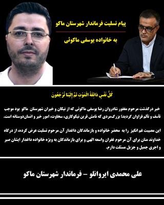 پیام تسلیت محمدی ایروانلو فرماندار شهرستان ماکو در پی درگذشت خیر ماکویی مرحوم مغفور شادروان رضا یوسفی ماکوئی