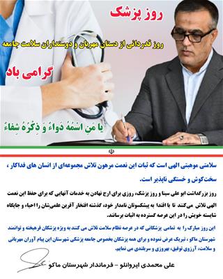 پیام تبریک محمدی ایروانلو فرماندار شهرستان ماکو بمناسبت یکم شهریور ماه سالروز بزرگداشت ابوعلی سینا و روز پزشک