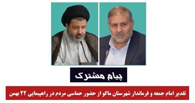 پیام مشترک تقدیر امام جمعه و فرماندار شهرستان ماکو از حضور حماسی مردم در راهپیمایی 22 بهمن