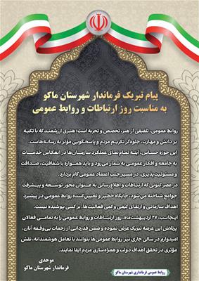فرماندار شهرستان ماکو، از زحمات و خدمات ارزنده آقای مهدی تندرست، مدیر روابط عمومی فرمانداری، تقدیر کرد.