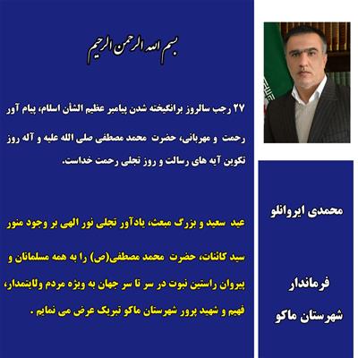 پیام تبریک فرماندار شهرستان ماکو بمناسبت عید سعید مبعث