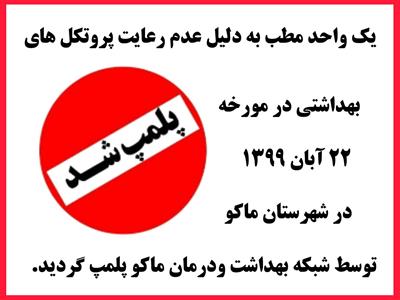 یک واحد مطب به دلیل عدم رعایت پروتکل های بهداشتی در ماکو پلمپ گردید
