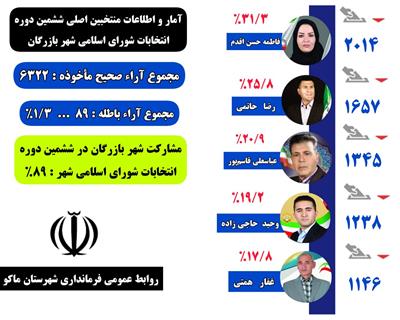 آمار و اطلاعات منتخبین اصلی ششمین دوره انتخابات شورای اسلامی شهر بازرگان