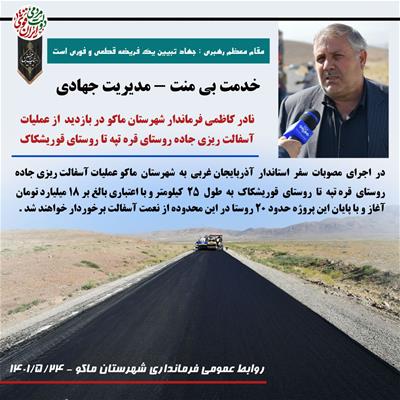 آسفالت ریزی جاده روستای قره تپه تا روستای قوریشکاک در اجرای مصوبات سفر استاندار آذربایجان غربی به شهرستان