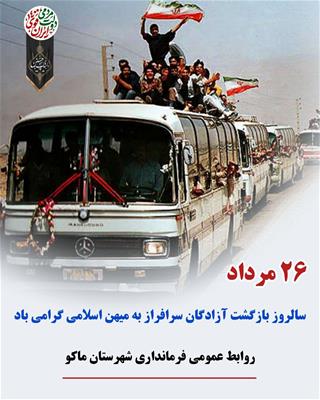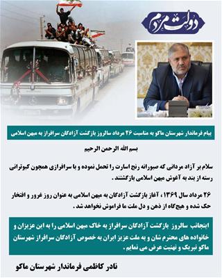 پیام فرماندار شهرستان ماکو به مناسبت 26 مرداد سالروز بازگشت آزادگان سرافراز به میهن اسلامی
