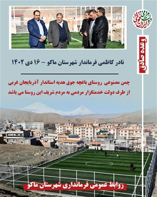 صبح امروز شنبه 16 دی 1402، نادر کاظمی فرماندار شهرستان ماکو به همراه رئیس اداره ورزش و جوانان از عملیات احداث چمن مصنوعی مینی فوتبال روستای باغچه جوق بازدید نمود .