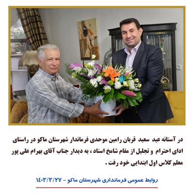 رامین موحدی فرماندار شهرستان ماکو در بدو ورود به روستای یاریم قیه سفلی با حضور در مزار شهدای این روستا با اهدای گل و قرائت فاتحه، ضمن گرامیداشت یاد و خاطره شهدای انقلاب اسلامی و دفاع مقدس و شهید مبارزه با مواد مخدر با آرمانهای مقدس شهدا تجدید میثاق کرد.
