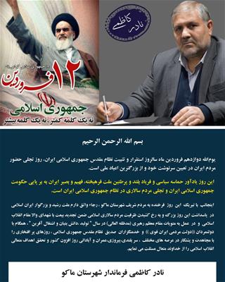 پیام فرماندار شهرستان ماکو به مناسبت 12 فروردین روز جمهوری اسلامی ایران