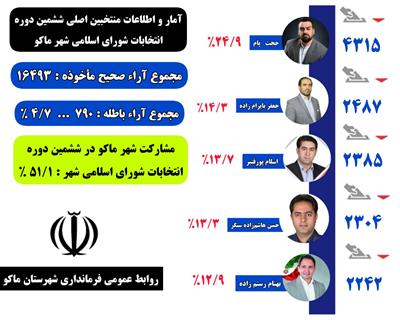 🔹 آمار و اطلاعات منتخبین اصلی ششمین دوره انتخابات شورای اسلامی شهر ماکو