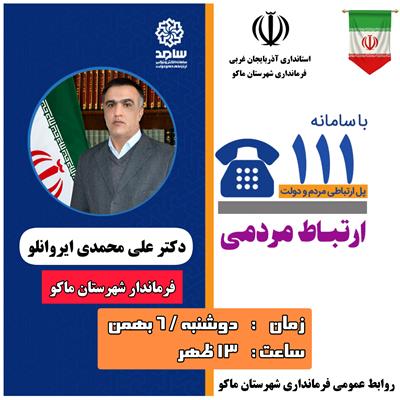 حضور فرماندار شهرستان ماکو در سامانه سامد برای پاسخگویی به سوالات و درخواست های مردمی