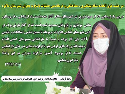 معاون برنامه ریزی و امور عمرانی فرماندار شهرستان ماکو در جلسه فوق العاده ستاد پیشگیری ، هماهنگی و فرماندهی عملیات پاسخ به بحران شهرستان :