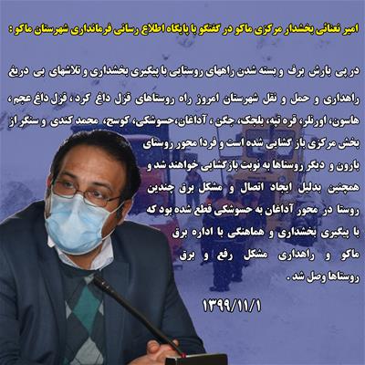 امیر نعنائی بخشدار مرکزی ماکو در گفتگو با پایگاه اطلاع رسانی فرمانداری شهرستان ماکو