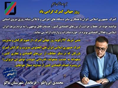 پیام تبریک محمدی ایروانلو فرماندار شهرستان ماکو به مناسبت روز جهانی گمرک