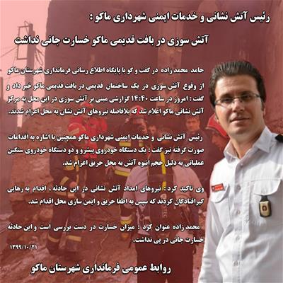 حامد محمد زاده رئیس آتش نشانی و خدمات ایمنی شهرداری ماکو :