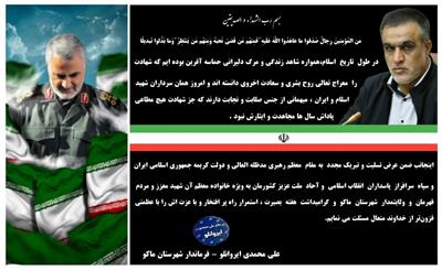 پیام تسلیت محمدی ایروانلو فرماندار شهرستان ماکو به مناسبت اولین سالگرد شهادت سردار سپهبد شهید سلیمانی