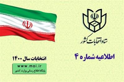 اطلاعیه شماره ۴ ستاد انتخابات کشور منتشر شد/ اعلام برنامه زمانی فرآیند های اجرایی انتخابات ششمین دوره ی شوراهای اسلامی شهر و روستا