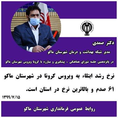 دکتر صمدی رئیس شبکه بهداشت و درمان شهرستان ماکو :