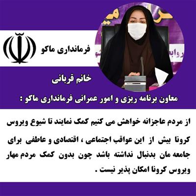 از مردم عاجزانه خواهش می کنیم کمک نمایند تا شیوع ویروس کرونا بیش از این عواقب اجتماعی ، اقتصادی و عاطفی برای جامعه مان بدنبال نداشته باشد چون بدون کمک مردم مهار ویروس کرونا امکان پذیر نیست .