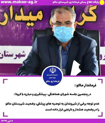 عدم توجه برخی از شهروندان به توصیه های پزشکی، وضعیت شهرستان ماکو را در وضعیت هشدار و نارنجی قرار داده است