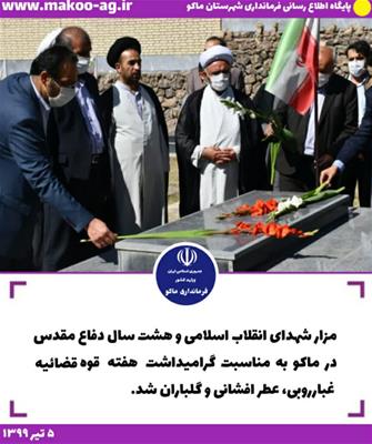 مزار شهدای انقلاب اسلامی و هشت سال دفاع مقدس در ماکو به مناسبت گرامیداشت هفته قوه قضائیه ، غبارروبی، عطر افشانی و گلباران شد.- پنج شنبه 5 تیر 1399 ساعت 10:00