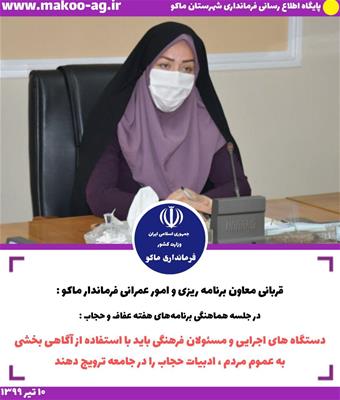 دستگاه های اجرایی و مسئولان فرهنگی باید با استفاده از آگاهی بخشی به عموم مردم ، ادبیات حجاب را در جامعه ترویج دهند