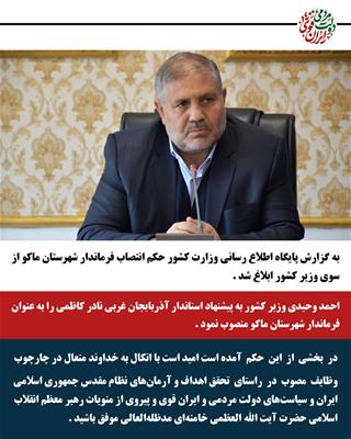 حکم انتصاب فرماندار شهرستان ماکو از سوی وزیر کشور ابلاغ شد .