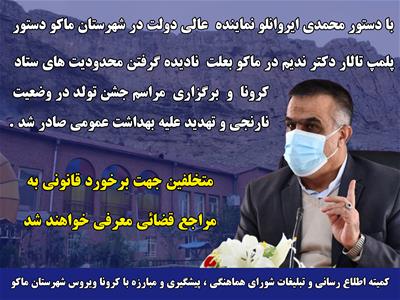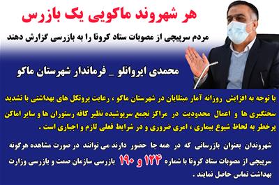 هر شهروند ماکویی یک بازرس ( مردم سرپیچی از مصوبات ستاد کرونا را به بازرسی گزارش دهند )