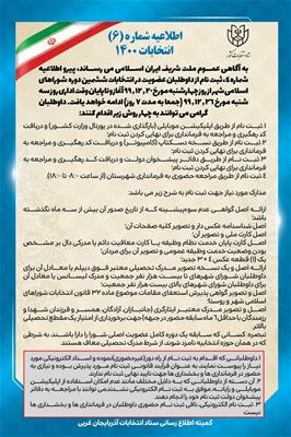 اطلاعیه شماره ۶ ستاد انتخابات کشور