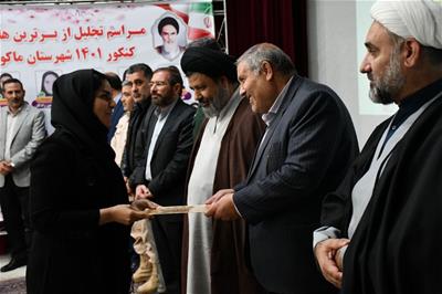 طی مراسمی با حضور نادر کاظمی فرماندار شهرستان ماکو ، امام جمعه و مسئولین شهرستانی با اهدای لوح تقدیر و هدایایی از رتبه های برتر کنکور ، نخبگان علمی ، فرهنگی ، هنری و قرآنی شهرستان ماکو تجلیل بعمل آمد .