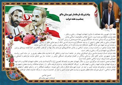 پیام تبریک فرماندار شهرستان ماکو بمناسبت هفته دولت