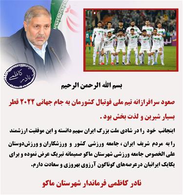 پیام تبریک نادر کاظمی فرماندار شهرستان ماکو به مناسبت صعود تیم ملی فوتبال کشورمان به جام جهانی 2022 قطر