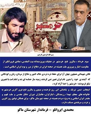 پیام فرماندار شهرستان ماکو بمناسبت سالروز آزادسازی خرمشهر