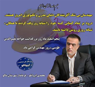 پیام تبریک فرماندار شهرستان ماکو بمناسبت روز مهندس