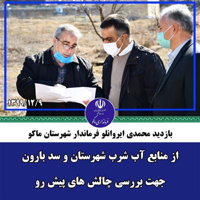 بازدید محمدی ایروانلو فرماندار شهرستان ماکو از منابع آب شرب شهرستان و سد بارون جهت بررسی چالش های پیش رو