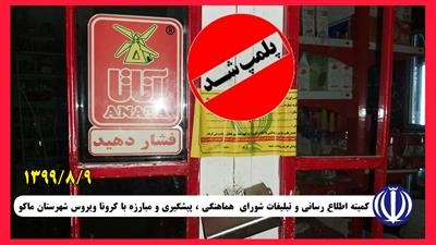 پلمپ یک واحد خواربارفروشی متخلف که تست کرونای متصدی آن مثبت شده و قرنطینه خانگی را رعایت نکرده بود