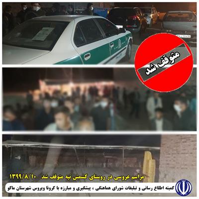 مراسم عروسی در روستای کشمش تپه شهرستان ماکو متوقف شد.