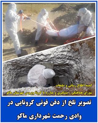 تصویر تلخ از دفن فوتی کرونایی در وادی رحمت شهرداری ماکو .