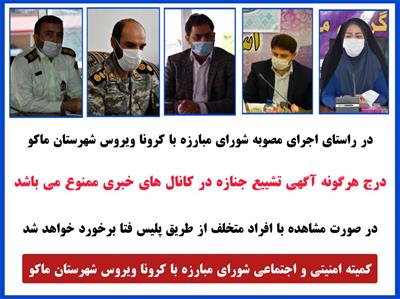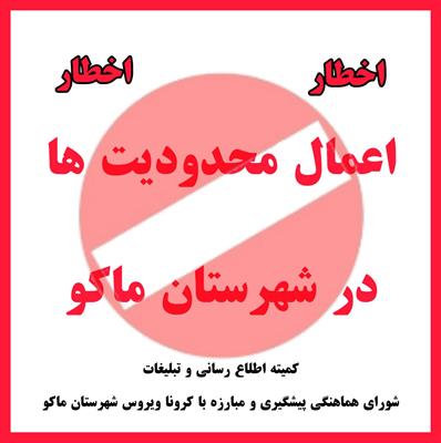 ممنوعیت فعالیت های گروه های شغلی ۲ ، ۳ و ۴ برای شهرستان ماکو اعلام شد