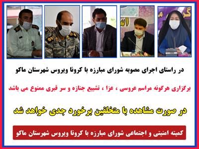 برگزاری هرگونه مراسم عروسی ، عزا ، تشییع جنازه و سر قبری ممنوع می باشد .