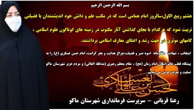پیام تسلیت سرپرست فرمانداری شهرستان ماکو بمناسبت سالروز شهادت امام حسن عسگری علیه السلام